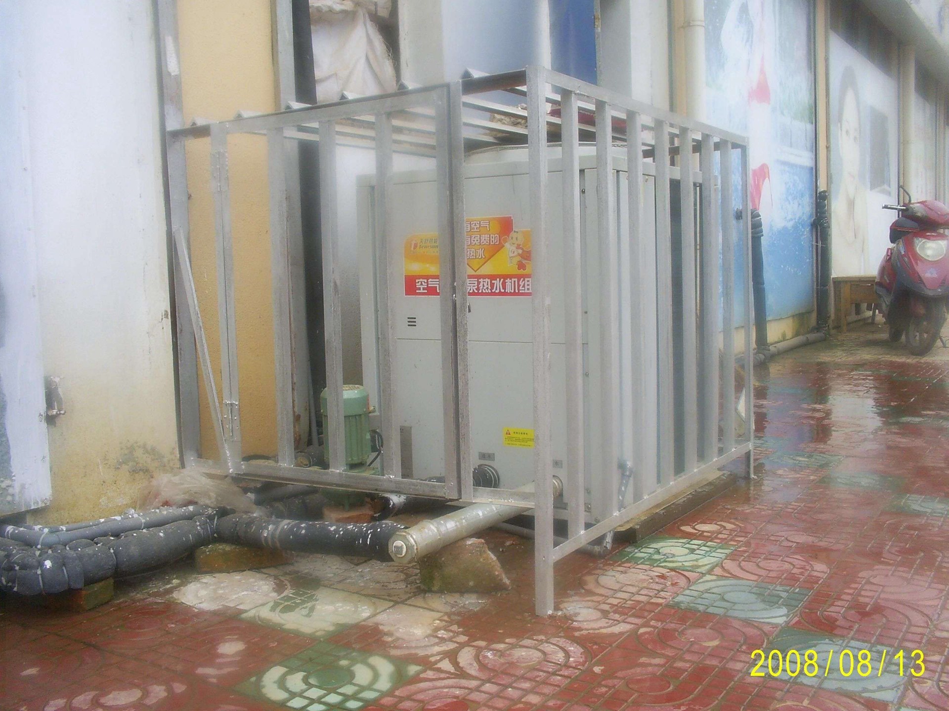 工程為宣城市COCO假日酒店熱泵熱水工程,日用熱水量為40噸,采用了天舒熱能空氣源熱泵熱水機組,工程采用了空氣源熱泵與水源熱泵整體搭配,完美地詮釋了熱泵熱水器制取熱水的超然優(yōu)勢。在春夏秋季節(jié),充分利用空氣源熱泵的極高的COP,以極低的成本制取熱水;在冬季,又彌補了空氣源熱泵能效不足的缺點,此時利用空氣源熱泵將熱水升至38℃,再利用水源熱泵將熱水升至55℃。該工程使用近2年來,節(jié)能效益極其顯著,已成為當(dāng)?shù)氐臉?biāo)志性工程。