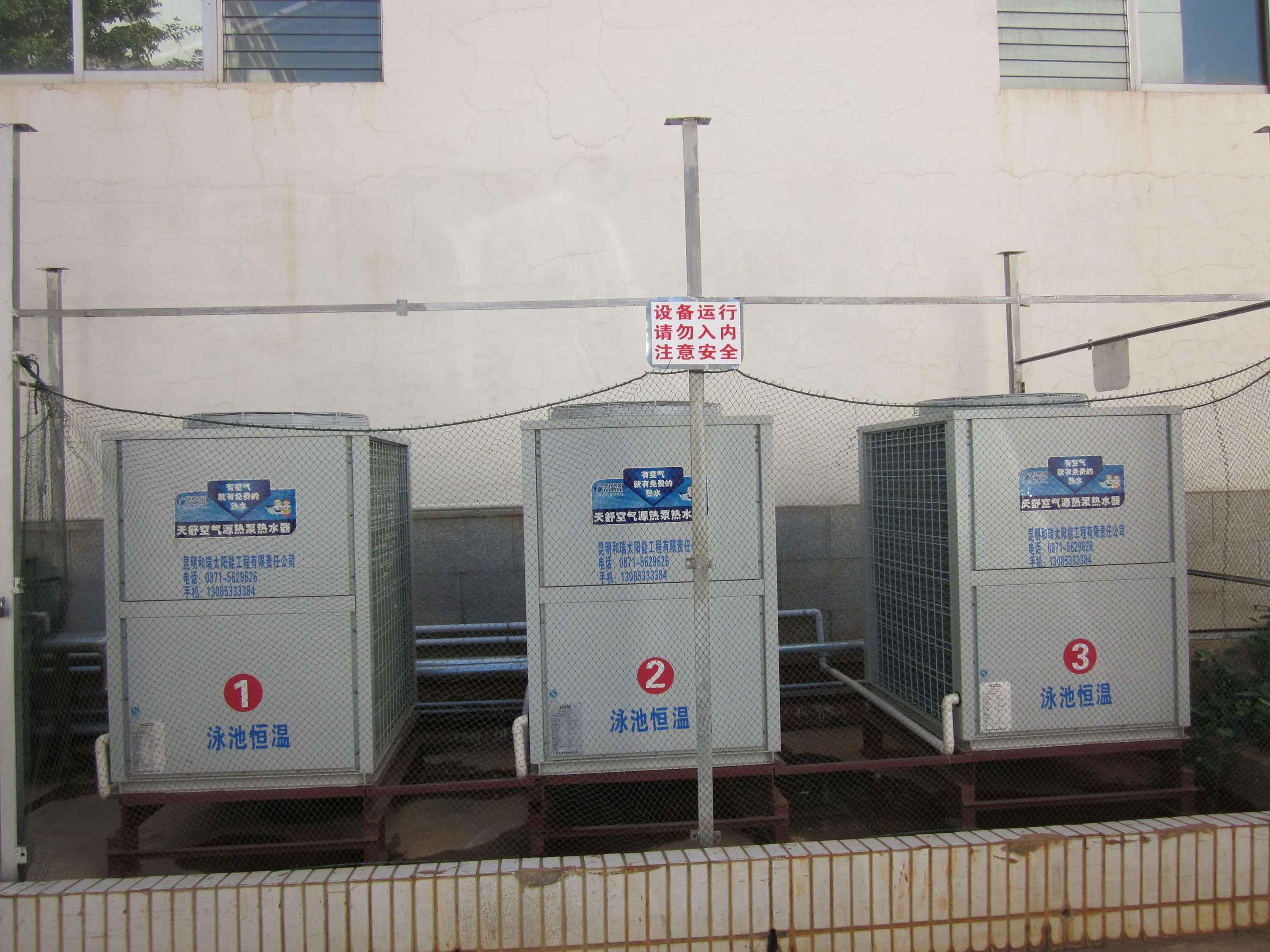 昆明世博花園酒店隸屬昆明市商務(wù)局,位于昆明市的世界園藝博覽園附近。本次項(xiàng)目包括186間客房(一號(hào)院)包括游泳館淋浴、網(wǎng)球館淋浴、員工洗浴及部分桑拿用熱水,每天需熱水50噸,選用了6臺(tái)天舒熱泵機(jī)組。經(jīng)系統(tǒng)運(yùn)行每天的耗電量在500度左右,運(yùn)行費(fèi)用是改造前的1/3。