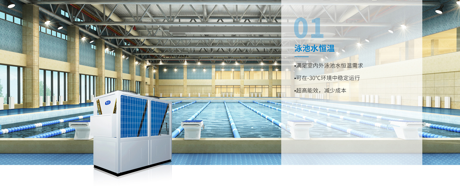 比賽游泳池對水溫要求較高,天舒泳池?zé)岜孟到y(tǒng)不僅能精確的控制水溫,而且相比傳統(tǒng)的加熱方式,可節(jié)約80%運(yùn)行費(fèi)用。