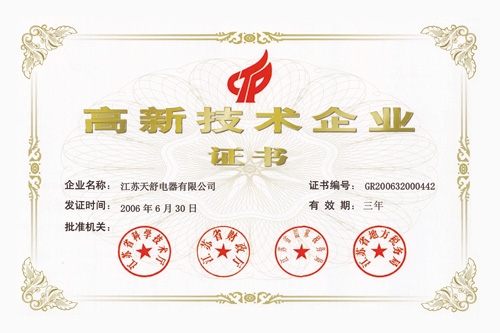 2006年06月,天舒公司被評(píng)定為國家級(jí)高新技術(shù)企業(yè)。
