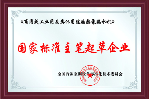 2017年12月,天舒主筆制定國家商用熱泵全年綜合能效比測試方法。