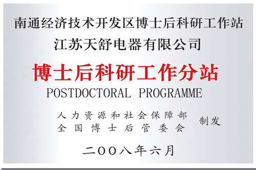 2008年09月,建立了國家博士后科研工作分站。